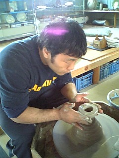 生まれて初めてロクロを回したけどこれが凄く難しく、なかなか形がうまく整わなくて、皿一個を作るのにかなりの集中力と時間を使ってどっと疲れたよ。でも時間がたつのも忘れるぐらい楽しかった。集中力を養うには陶芸は凄くいいよ。土に触れることは心を癒してくれるしね。陶芸家の同級生に感謝!
