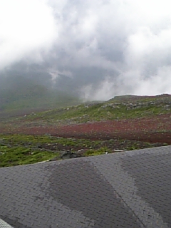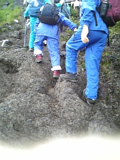 今、七合目を過ぎたとこ。雲の中だよ。景色はいいんだけど。かなりキツイ。