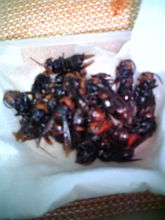 知人からスズメバチの焼酎漬けをいただいたんで、から揚げにして食べたよ。グロいけど、うまかった。もうこれでビンビンだぁ!