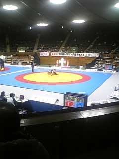 今日、代々木体育館でアマレス日本一を観て来たよ。日体大の一緒に練習してる連中がいっぱい出てて楽しかった。俺も一度出てみたいなぁ!尚、大会は明日と明後日もやってるよ。