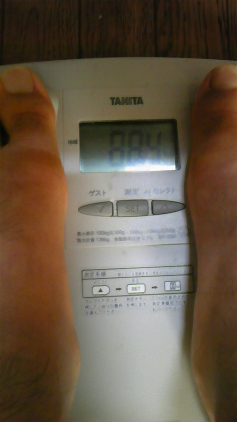 朝、起きた時、体重を計ったら87.1キロもあって焦ったけど、熱湯風呂に10回ぐらい入り、なんとか無事83.6キロでパスしたよ。