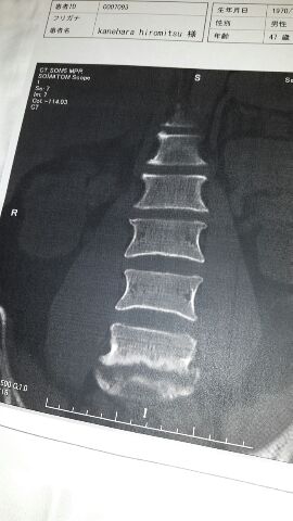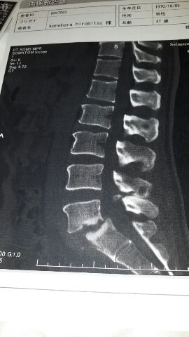 俺の一番下の腰の骨、それと仙骨と写真では写ってないけど椎間板、こんなに溶けてしまった。